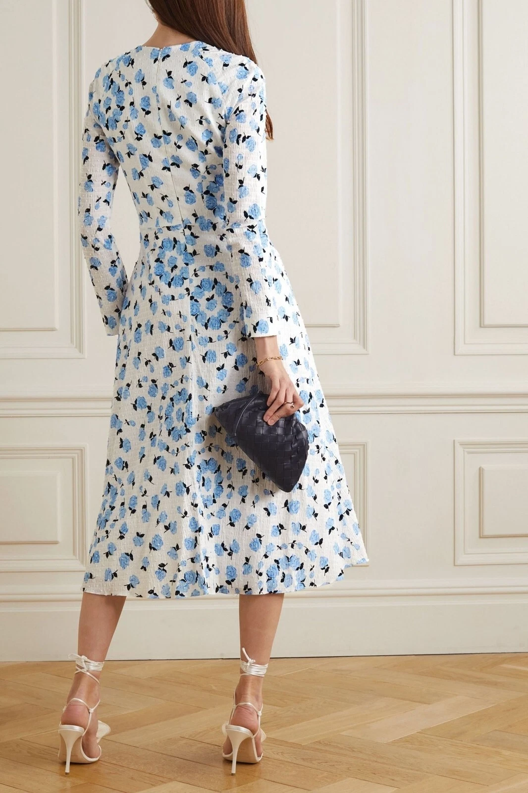 Women’s Floral Midi Dress – Cotton Linen A-Line Sundress with Ruffled Sleeves
